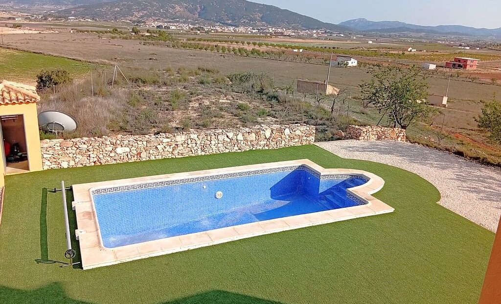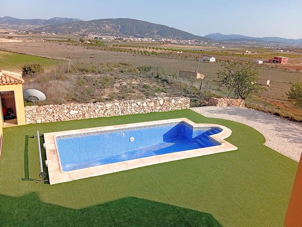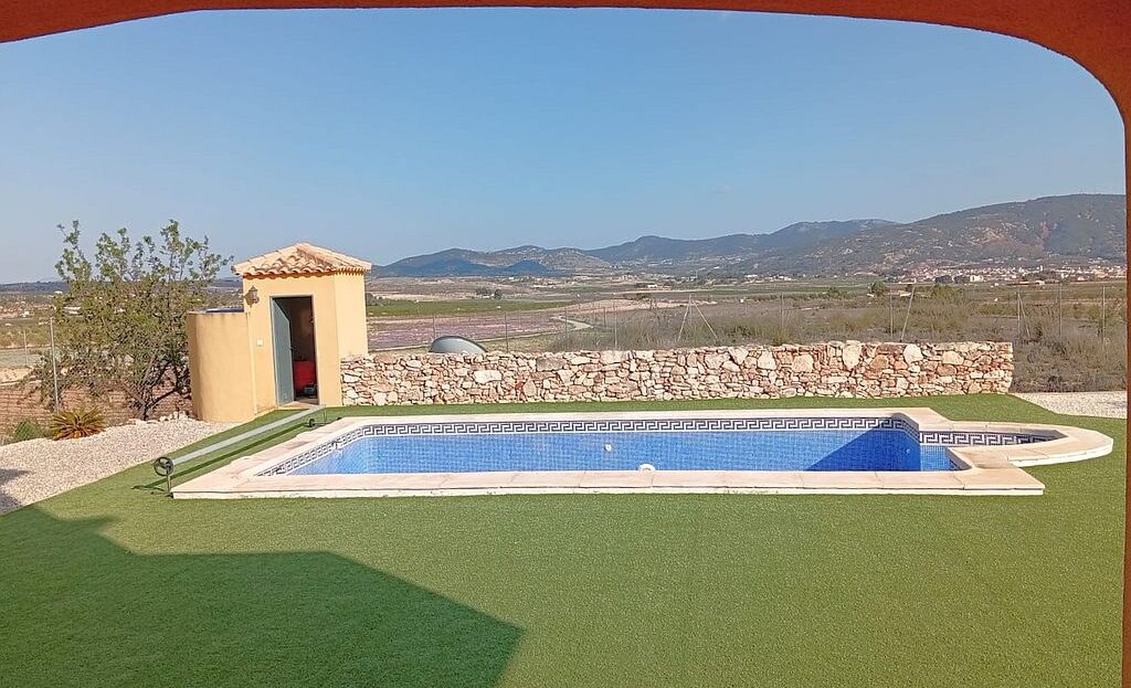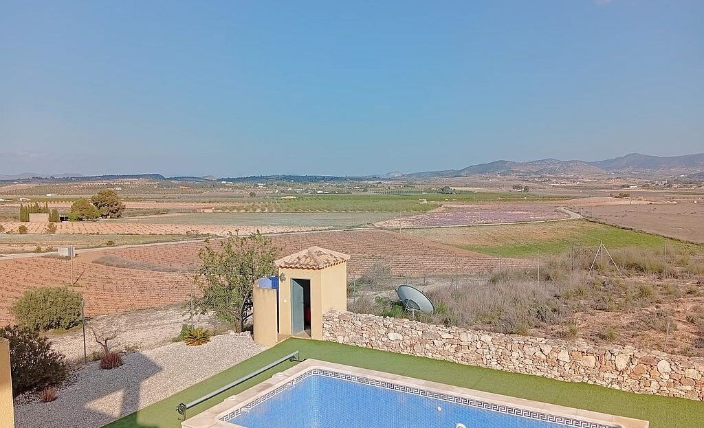 Beautiful Pinoso Finca in a 10000 sq meter plot with unique 360 degree views. The Finca was built 12 years ago and was designed by its present owner. This property has its own private pool, 4 bedrooms, 2.5 bathrooms, a separate kitchen, an outdoor casita, garden, outdoor terraces, a private entrance and drive. It is sold unfurnished, but has central heating, an alarm, internet, shutters, grills and a storage room. This Finca sits in the middle of some fantastic views of the countryside and mountains in Pinoso. The Finca is in excellent condition and will suit both as a family holiday or permanent home. The international airports of Alicante and Murcia are within an hour’s drive as well as the cities of Murcia and Alicante. For walkers the Parque Regional of Sierra de la Pila, and del Carche are a 20 minutes’ drive away.